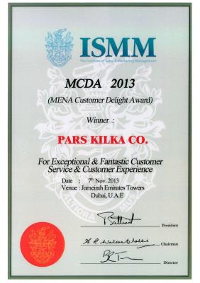 این شرکت دارای گواهینامه های بین المللی iso 9001 و iso 14001 از شرکت QUAY AUDIT LIMITED انگلستان و همچنین تندیس و گواهینامه MENA در زمینه Customer Deligt و گواهینامه بین المللی ISMM از موسسه دولتی انگلستان و مدال افتخار و گواهینامه Customer Service از دانشگاه American Liberty University ایالات متحده امریکا می باشد.